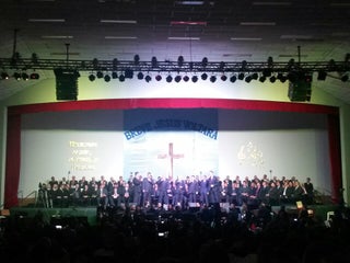 Culto batista tradicional, com muito canto coral.