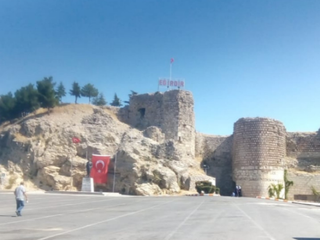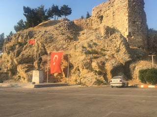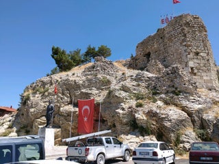 Kaleden geriye sadece küçük bir sur parçası kalmış bunu da uzaktan da görebilirsiniz