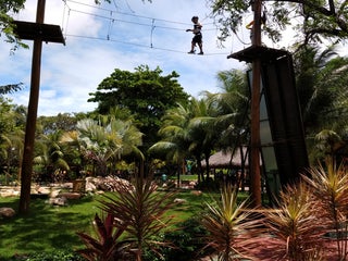 Recomendo o pacote aventura para os mais aventureiros, que já inclui todas as atrações. Tem tirolesa, escalada, arvorismo, pedalinho, caiaque, dentre outras atrações legais. Tem restaurante dentro.
