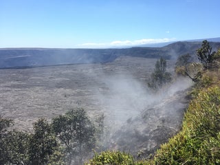 Take the path thru the vents you see and get to the overlook for the crater.