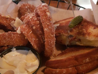Food was alright- burger was a little too charred and dry for me, mozzarella sticks were standard. The Mac and cheese was seasoned strangely (rosemary?) my favorite was the side salad which I loved.