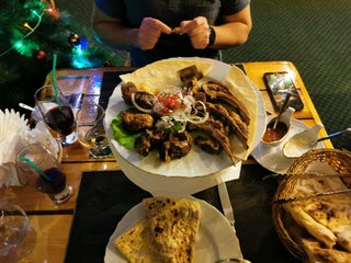 Вкусно, Но нужно аккуратно заказывать еду - очень большие порции! Восхитителен суп пити. В счет добавляют обслуживание и 200 рублей за музыку.