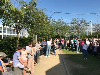 Good place to take a beer after work in EastPoint. Not expensive, and nice terrace for summer