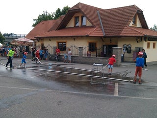 Jako za starých časů! Takže vegeta, hranolky plovoucí v omáčce, obloha, a příloha zvlášť. Klasiky jako maso s broskví a katův šleh. Hezké místo u vody, ale potenciál zabitý