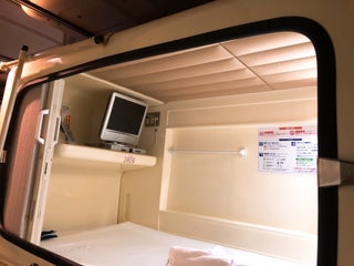 ロッカーとカプセルが近いのが良い。コンセントもテレビ横と照明の下面の二ヶ所にあります(カプセルによって異なる場合あり)。