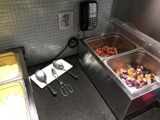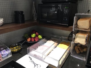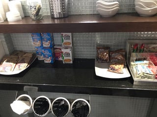 The free breakfast is nice and includes a variety of hot, freshly prepared foods - eggs, potatoes and bacon.