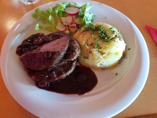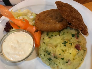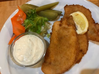 Dlouhé čekání se vyplatilo, oběd opravdu luxusní. Vepřová panenka se sýrovou omáčkou, perfektní stouchane brambory a domácí tatarka. Doporučuji!