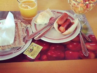 Frutas frescas, sucos naturais, boa variedade de pães e bolachas e muita limpeza tanto no restaurante quanto no quarto. Só faltou shampoo no banheiro. Bom atendimento.