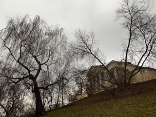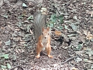 Во дворике очень навязчивые голуби и белки. Запрыгивают на лавочки и лезут в сумки.
