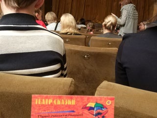 Пришли на спектакль "Как найти Снегурочку".Прекрасный театр,всё для деток,кресла меняются по высоте,всё видно!