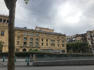Grande bagagem histórica e cultural. O Teatro Victoria Eugenia fica no bairro romântico de Donostia-San Sebastián e tem uma bela arquitetura linda em todos os ângulos. Próxima ao Rio Urumea.