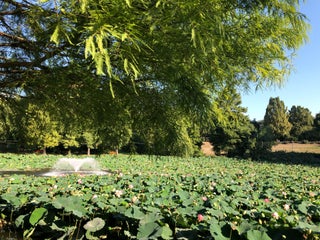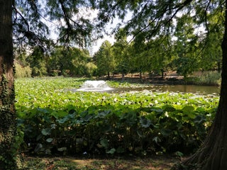 Many lovely trails and a lake with water lillies and turtles.