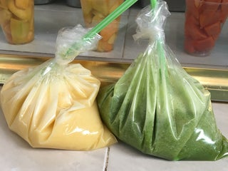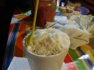 Lo bueno: Adentro hay mariscos, muy buenos, caldo de camarón, pescado, cóctel.
